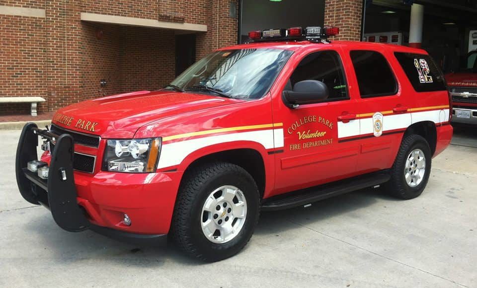 Chief 12A operates this 2013 Chevy Tahoe command vehicle. The vehicle is outfitted with a full LED light package featuring Whelen LED heads along with a Powerarc light bar and Powerarc light heads on the front push bar. The graphics package features new “Maryland Pride” 12’s on the side cargo windows along with the standard CPVFD striping and lettering.