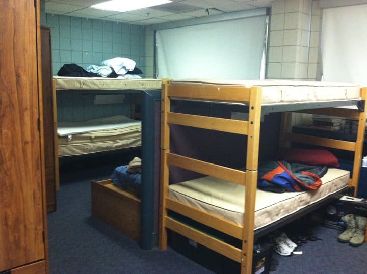 The second floor is composed of three wings joined by a common atrium. Directly above the apparatus bays is the one of a kind John L. Bryan Fire Service Dormitory. Designed like a college dormitory, it provides one and two person rooms for up to twenty-four full time student volunteers. In the south wing there are three bunkrooms, with fifteen additional bunks, for non-live in members. The career paramedic crew is assigned the fourth bunkroom.
